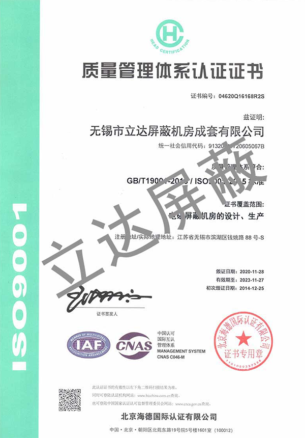 資質證書 專業的電磁屏蔽機房的研發、設計與制造商